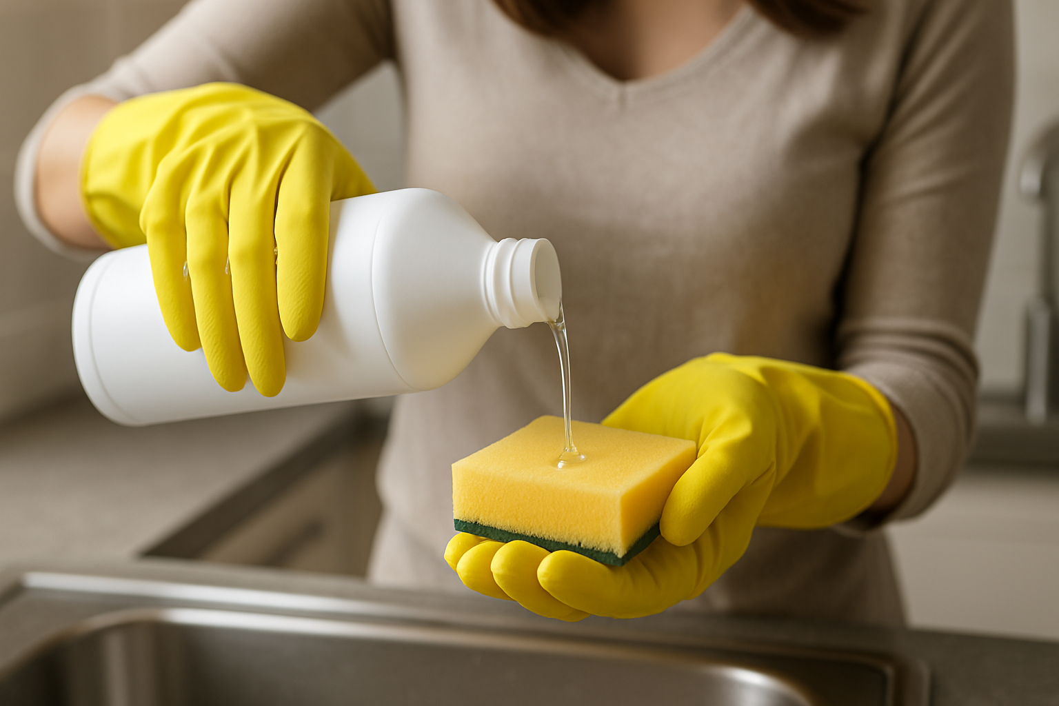 Αν και πολλοί θεωρούν ότι η χλωρίνη απολυμαίνει καλά τις ανοξείδωτες επιφάνειες, στην πραγματικότητα τις καταστρέφει μακροπρόθεσμα. Δημιουργεί σημάδια και διαβρώνει το μέταλλο. Καλύτερη λύση: σαπούνι πιάτων και ζεστό νερό.