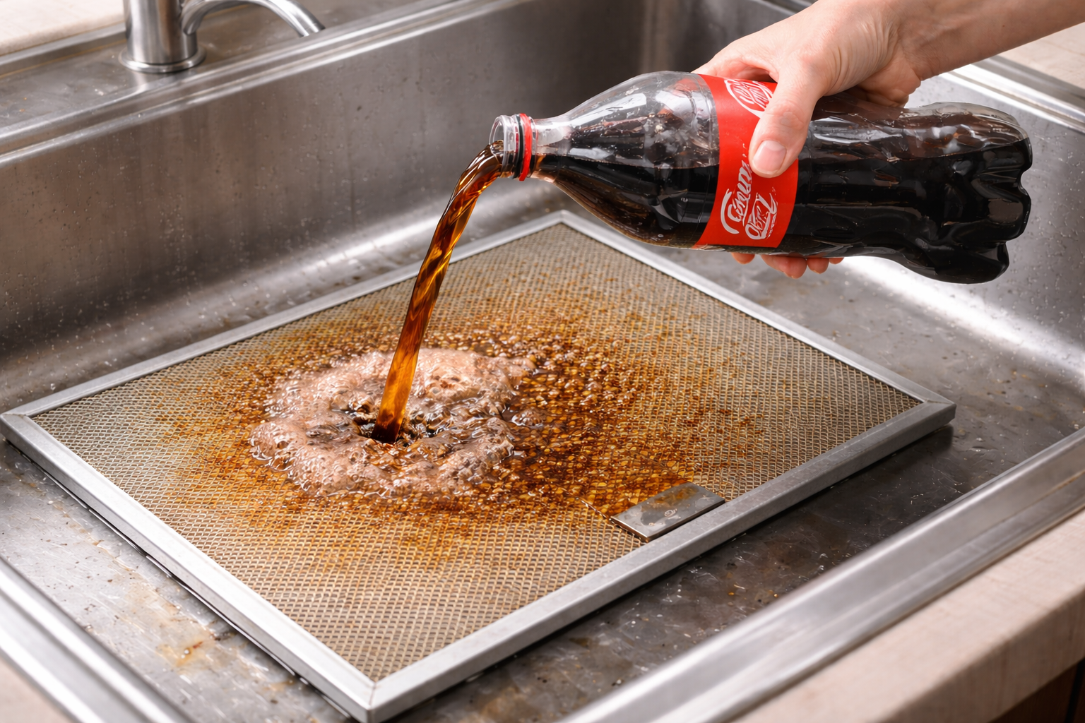 Ακούγεται περίεργο. Κι όμως, ένα απλό μπουκάλι Coca-Cola μπορεί να σας λύσει τα χέρια σε έναν από τους πιο κουραστικούς καθαρισμούς της κουζίνας: το μεταλλικό φίλτρο του απορροφητήρα.