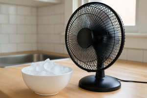 Δεν χρειάζεσαι απαραίτητα ακριβές συσκευές για να κρατήσεις το σπίτι σου δροσερό. Με ένα μπολ πάγου και τον ανεμιστήρα σου, μπορείς να φτιάξεις μια απλή και αποτελεσματική “μηχανή” δροσιάς. Δοκίμασέ το σήμερα και θα νιώσεις άμεση διαφορά!